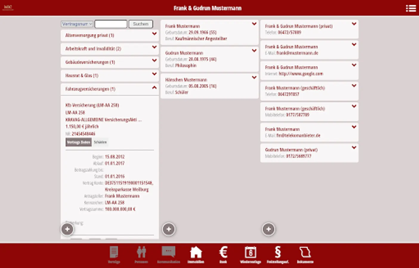 This APP is an application for accessing customer data and documents stored with finance and insurance brokers. This means that you can access your own contract data on insurance, capital investments, financing and building society contracts at any time and on the go and view the documents available for this.