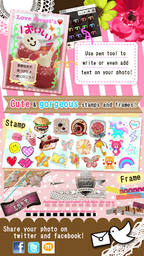 Let's post the edited photo that you have decoration to blog and SNS Twitter, facebook, Tumblr, Instagram, such as Pinterest! You should appeal cute by processing the
