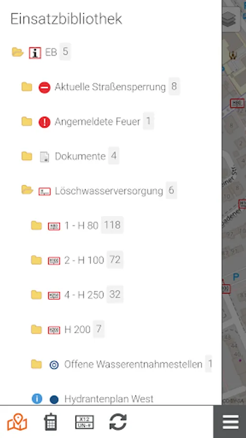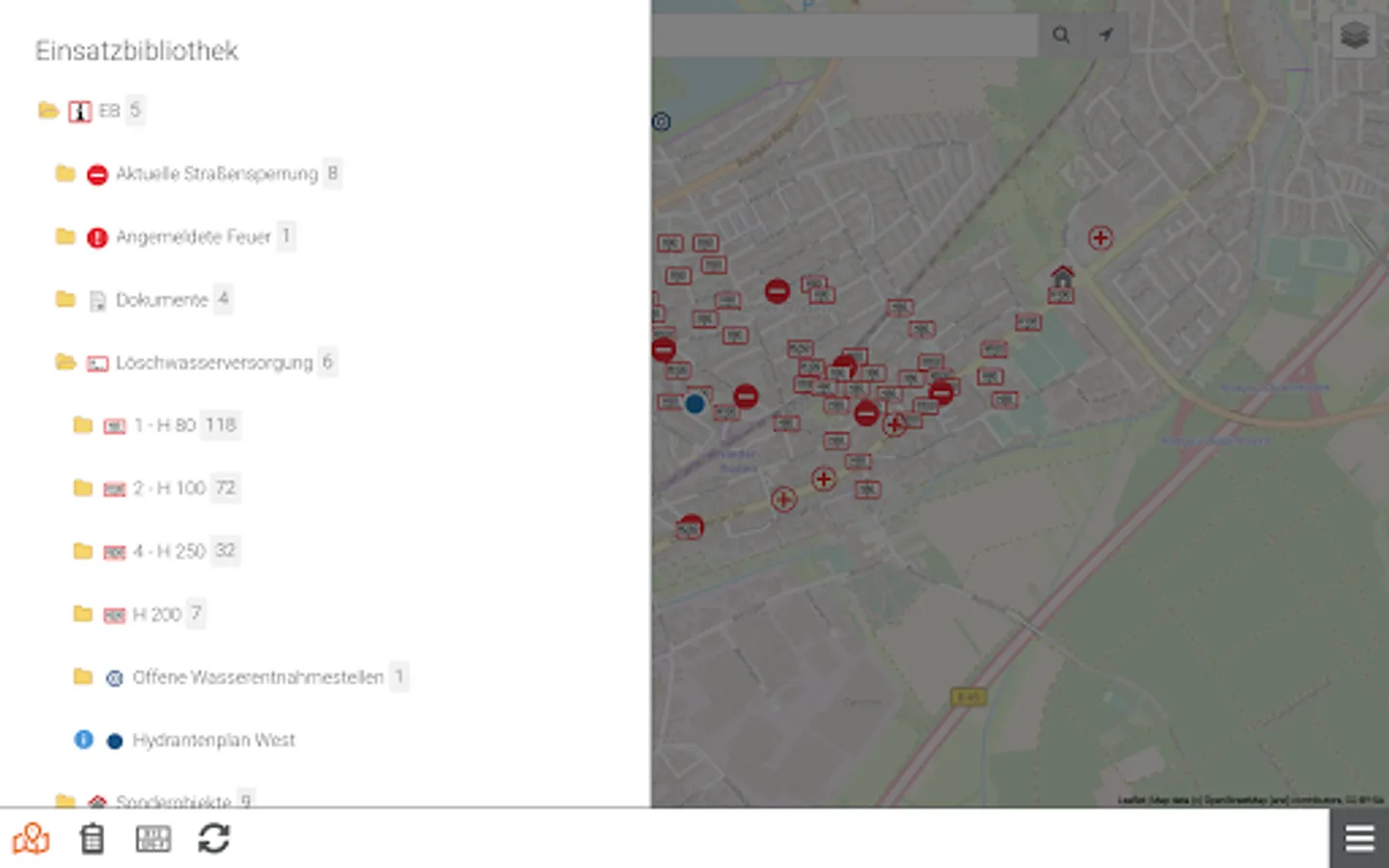 The deployment library shows all of your deployment-relevant property information georeferenced - from hydrant locations to fire brigade plans to installation rooms and any general information such as standard deployment rules, telephone lists, forest rescue points, etc.