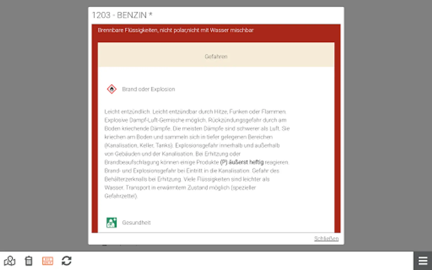The optionally available reference work “Handbook of Emergency Aid for First Use of Hazardous Goods” from ecomed-Verlag quickly leads to the relevant leaflet with the dangers of the product, the tactical first aid measures and first aid information via the UN number or the German substance name.