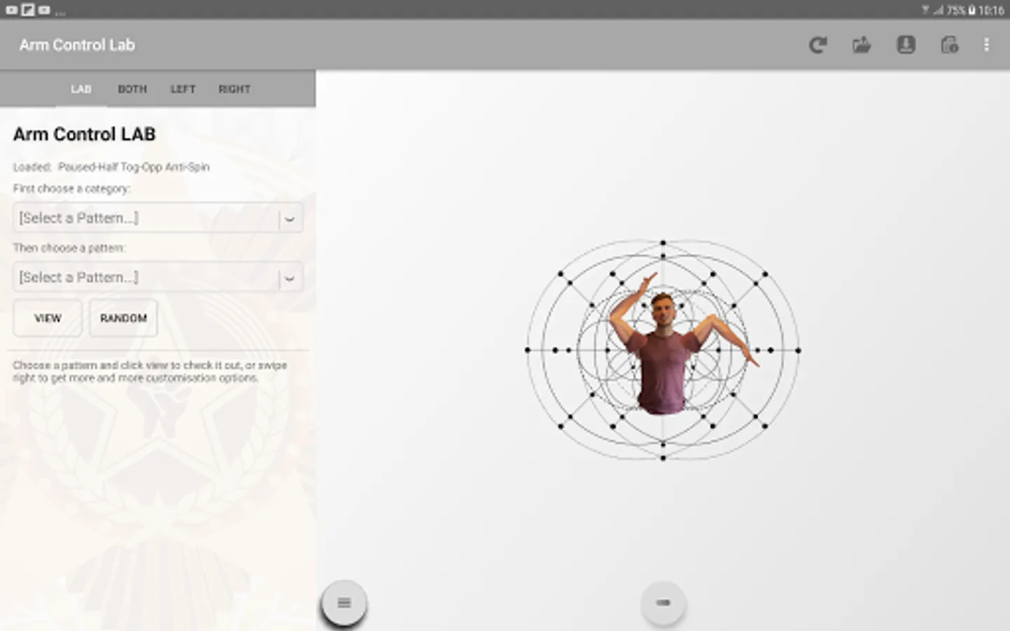 This is an app that simulates tutting style arm movements. It's based on Poi terminology and a simulator I made for the spinning arts.