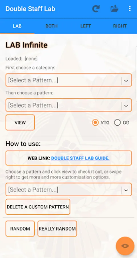 You can load one of 100+ patterns and then view them or modify them. These patterns come in two sets of terminology, VTG (Vulcan Tech Gospel) or OG (Old School). VTG is the default and the standard in North America. I prefer my OG terminology, cos I'm old. :)