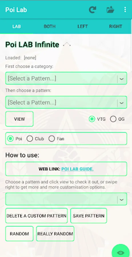 You can load one of 100+ patterns and then view them or modify them. These patterns come in two sets of terminology, VTG (Vulcan Tech Gospel) or OG (Old School). VTG is the default and the standard in North America. I prefer my OG terminology, cos I'm old. :)