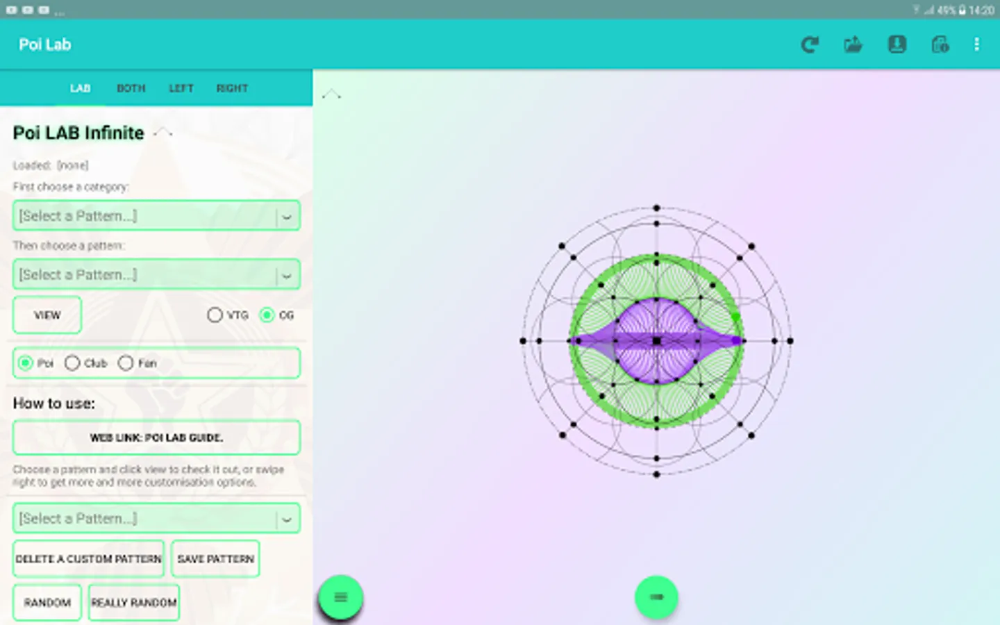 In this, the Full version, there are several differences to the free version: No Ads, many many more patterns, having a custom saved pattern list, having extra visualization modes, working better on a tablet and on large phones, random pattern selection and the ability to completely customize each poi individually. And, specially for this version, being able to model up to four poi. So lots of possibilities with 2p1h.