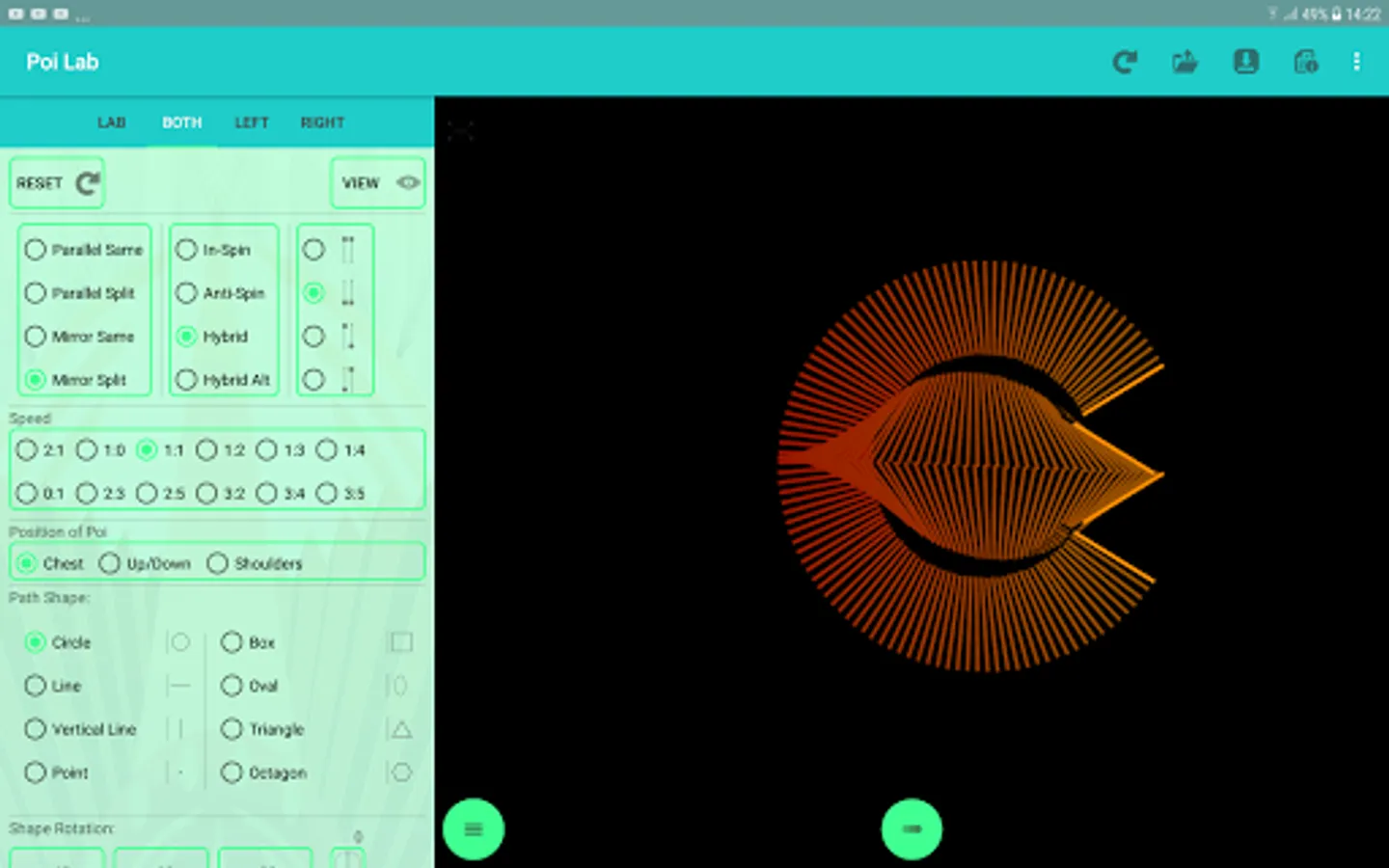 Poi LAB is a poi spinning simulator. It can be programmed to do thousands of different moves, from the simple to the super complicated. Isolations to 8 step caps to box anti-spin to... It's literally a very large amount of moves. There are downsides however, for the purposes of this free version, the poi act like clubs / sticks, they don't do pendulums right now.