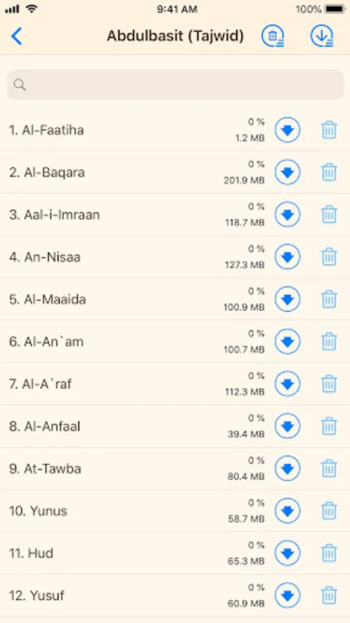 • Sharing audio files (Recitation and Audio Translation) on social media