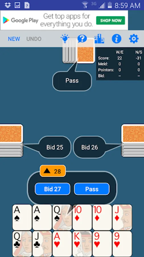Full-featured pinochle app