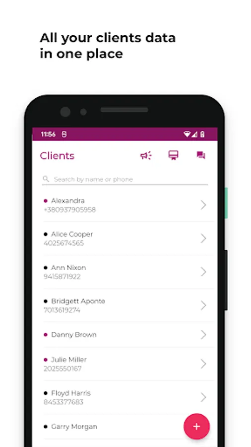 - Keep all clients' data in a single place. Quickly create client records from your phone contacts.