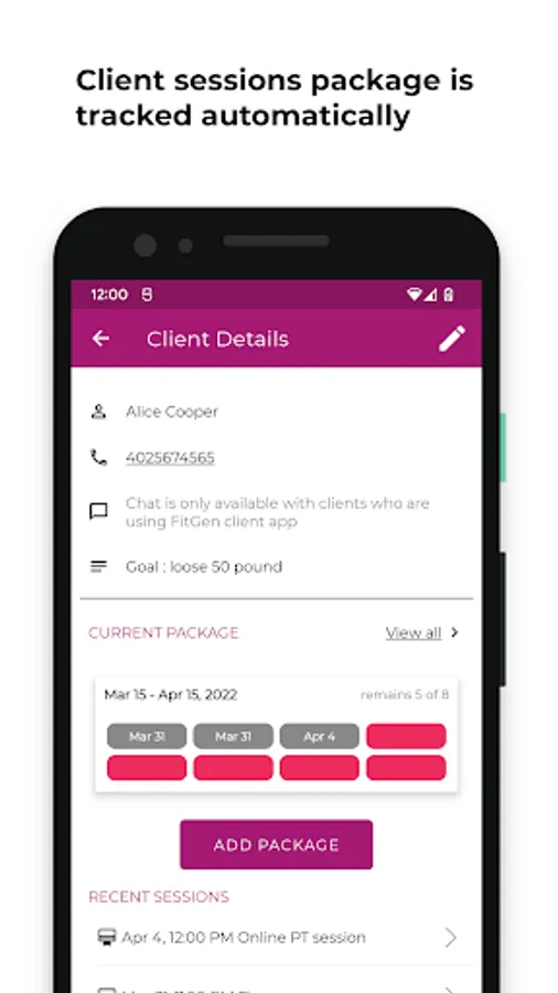 - FitGen app for clients is different from your trainer's app, your clients see features relevant to only them.