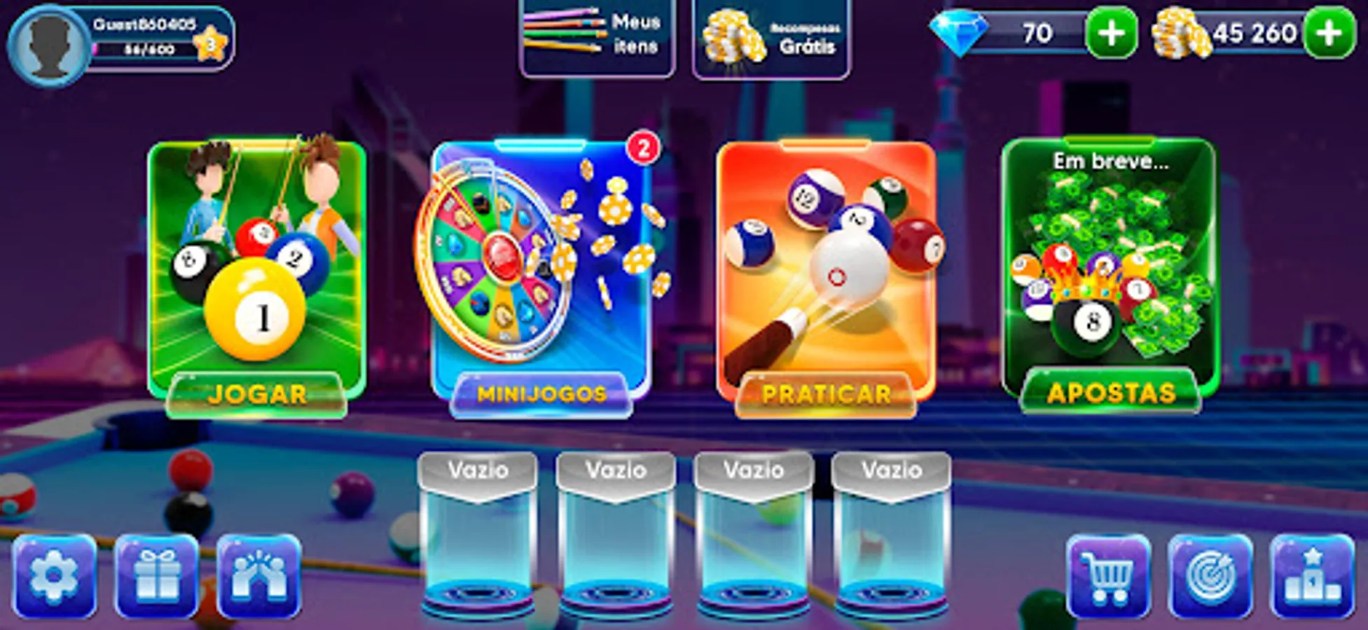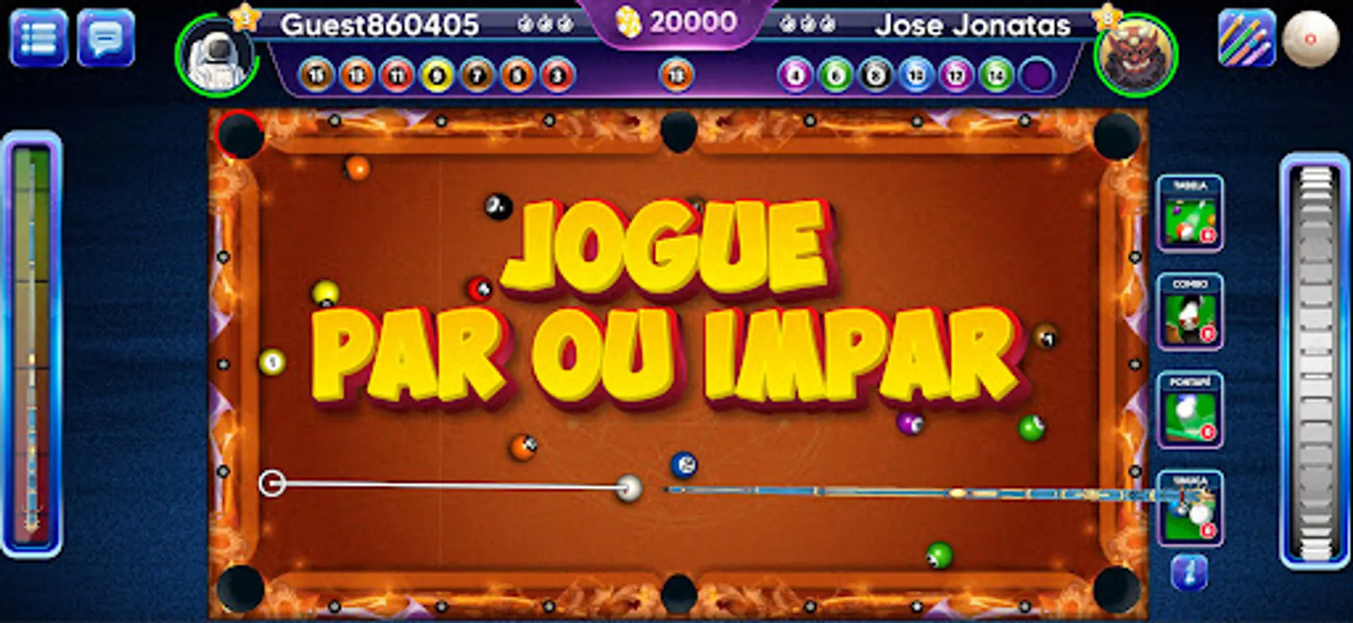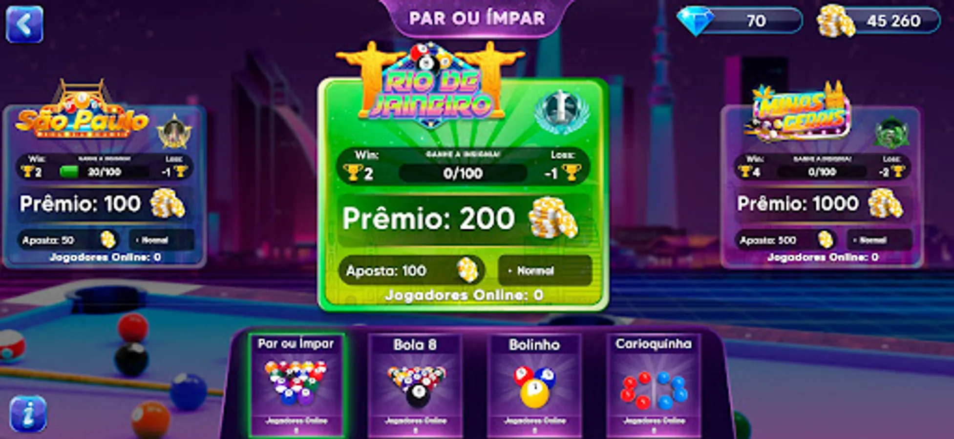 The game Sinuquinha was developed especially for the Brazilian public who loves to play a pool, whether in the modality Even or Odd, Cupcake or Carioquinha .
