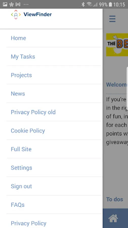 You can choose to receive push notifications to let you know it's time to take part in new tasks. Just sign in using the log in details you use to log into the View Finder site.