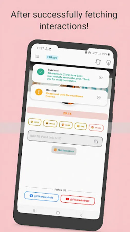 Flikers application always helps you increase reactions on Facebook with complete ease!