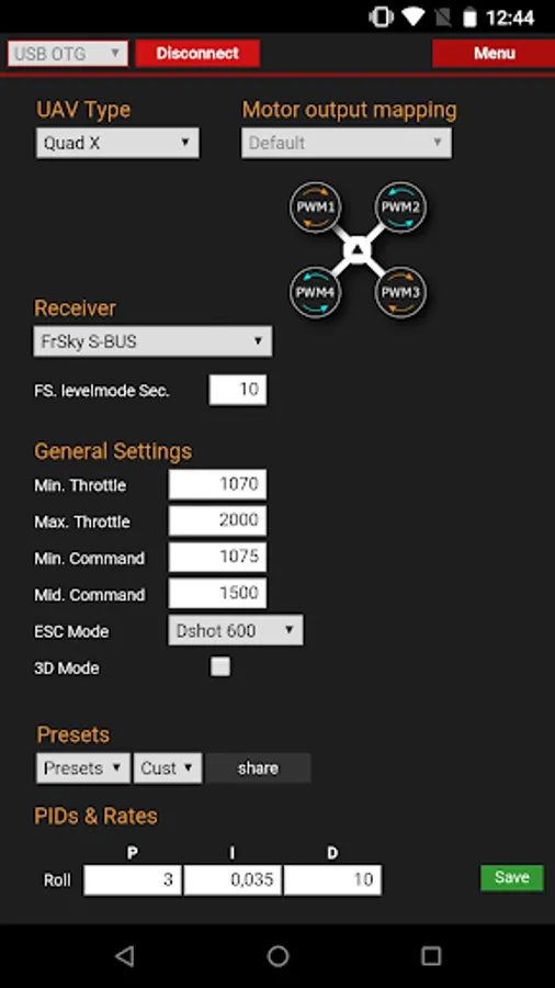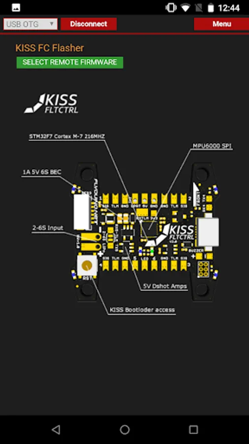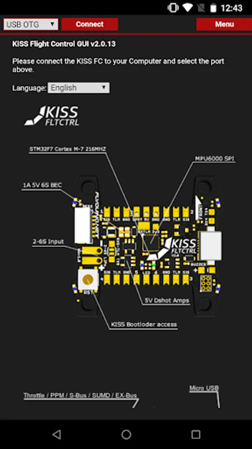 This is the Flyduino KISS FC app supporting KISS FC,CC and FCv2 flight controller.
