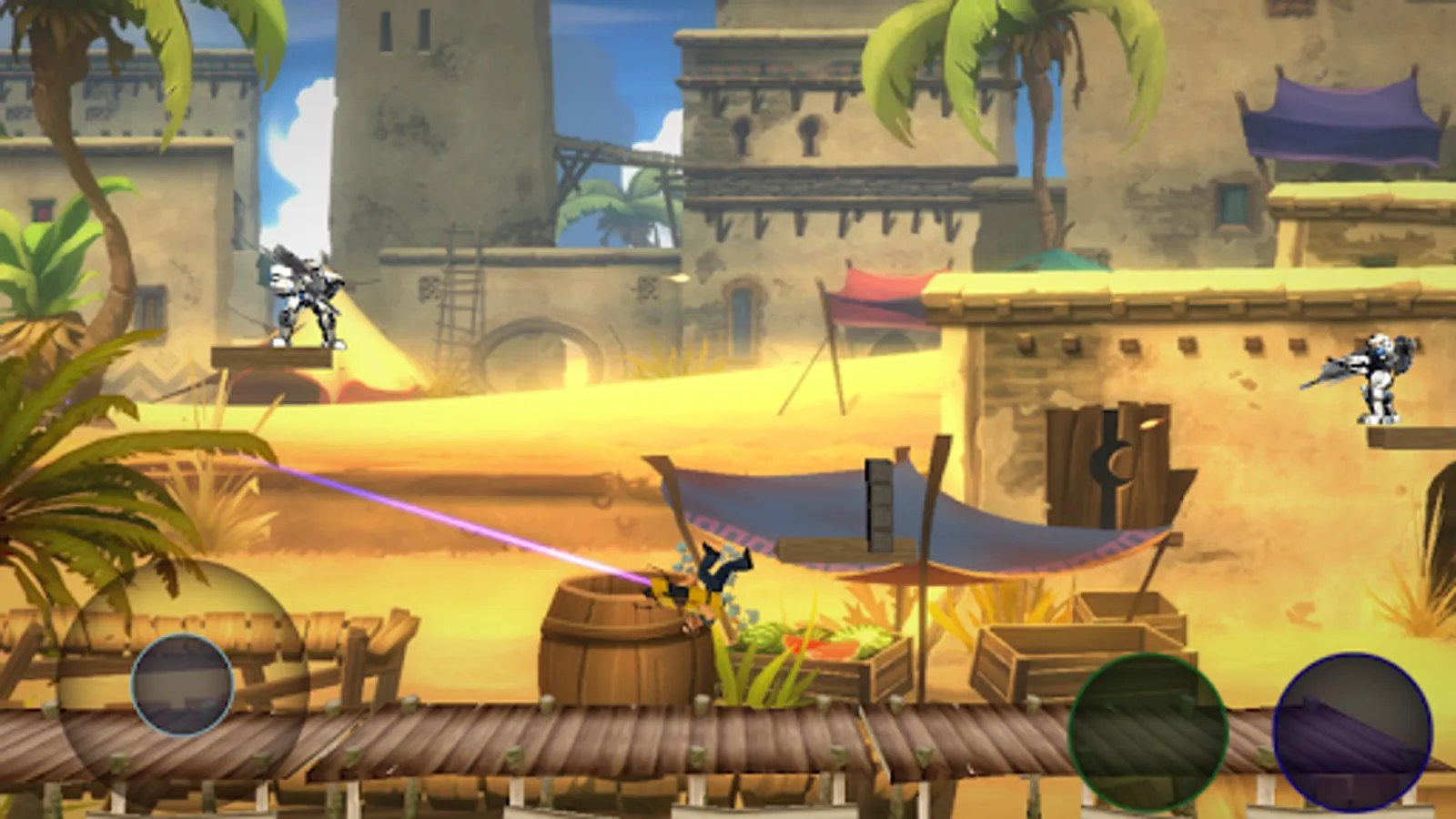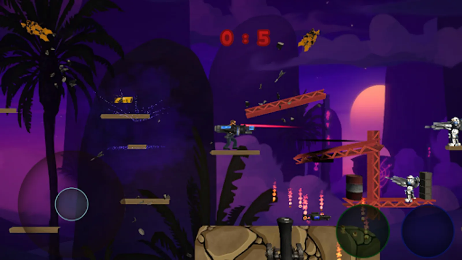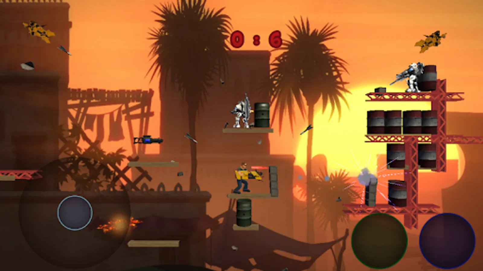 Spend fun moments with this 2D shooting game against robots and drones, collection of amazing weapons and perform slow-motion stunts to shoot at robots, dodge the hail of bullets from enemies and achieve 3 stars in each level to get the maximum record,