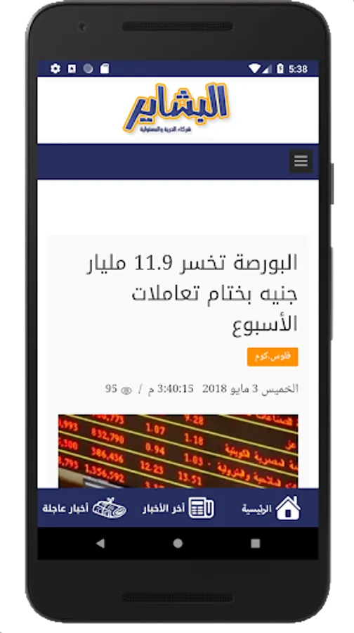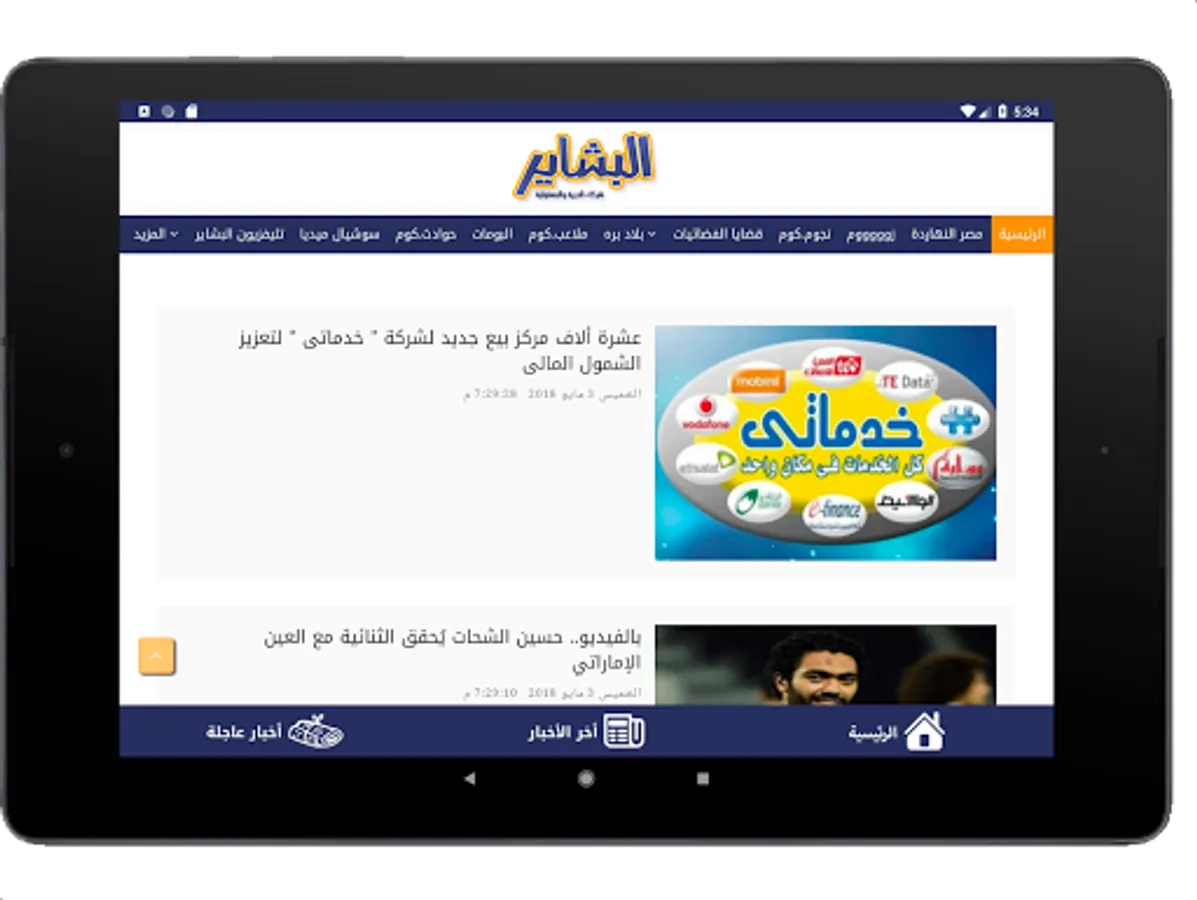 It provides breaking news from Egypt as they happen, as well as the first page of the newspaper Bashayer daily columns topics. The application also provides news events, the economy and the latest stock market news, finance and business. The application follows the Egyptian sports news and special general league as well as Arab and international news as well as many basic and distinctive for the application of Al Bashayer properties, including:
