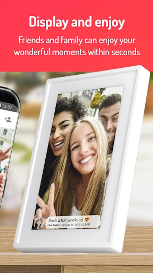 Frameo is an easy way to share your photos with the people you love. Send photos directly from your smartphone to a Frameo WiFi digital photo frame and allow friends and family to enjoy your best moments. Add a caption to the photo to fully portray your experience!