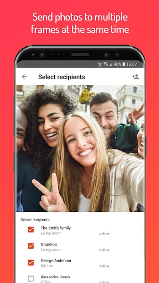 With the app you can send photos to all your connected Frameo WiFi photo frames wherever you are in the world. The photos will appear within seconds, so you can share the moments as they happen.