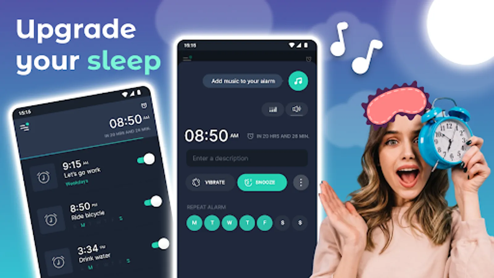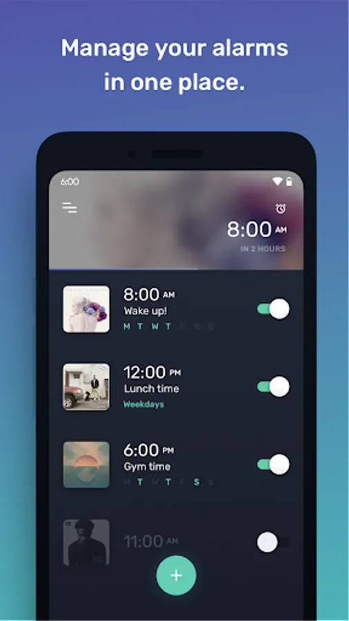 Your entire music collection is here. Add songs to your alarms based on specific music genres, artists, and moods, or pick a curated playlist. Time to workout? Simply add a playlist and get motivated with different songs every time your alarm goes off. Free alarm clock for all your needs! π΅