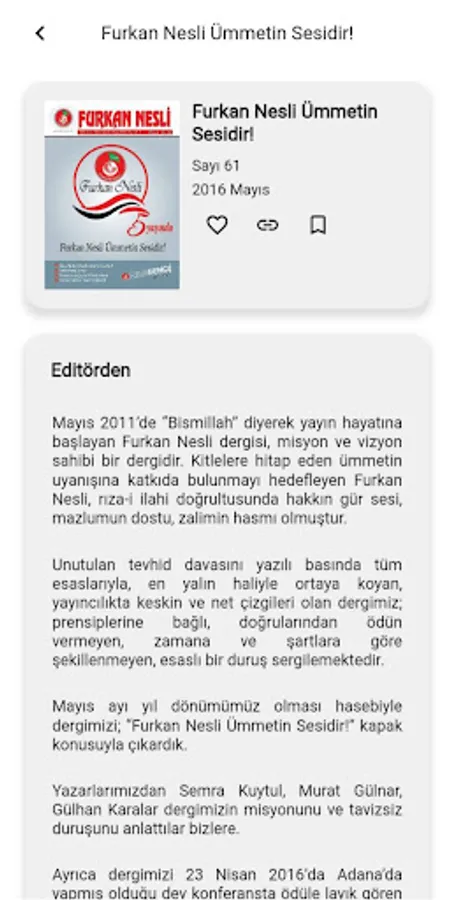 The Rising Voice of the Leading Generation, as the name of the Furkan Nesli Magazine requires, argues that it should always put forward the Truth and start with the right of Allah Azza wa Celle. He adopts the motto "What God says must be in God's world" as his motto.