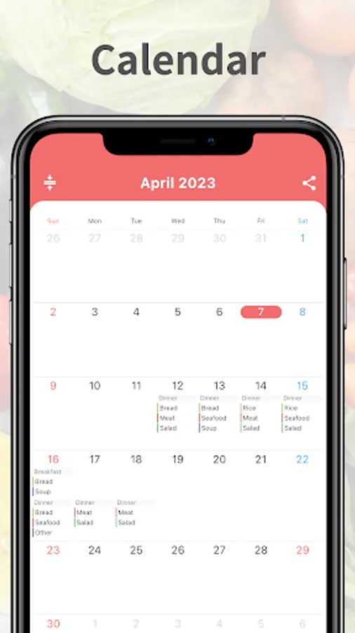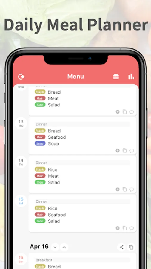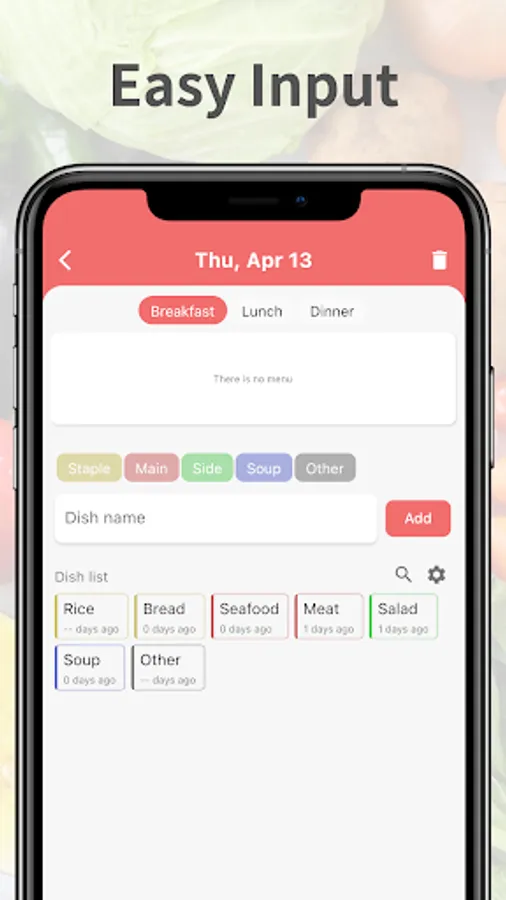 You can create a menu for each day. All you have to do is enter the name of the dish and add it to the menu.