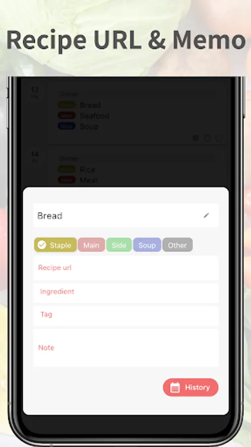 You can enter recipe URLs and memos for each dish, which is useful for checking how to make a dish.