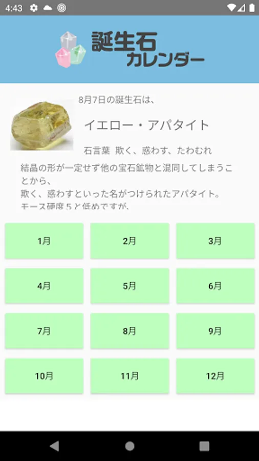 The birthstone dictionary is an application that allows you to search for birthday stones.