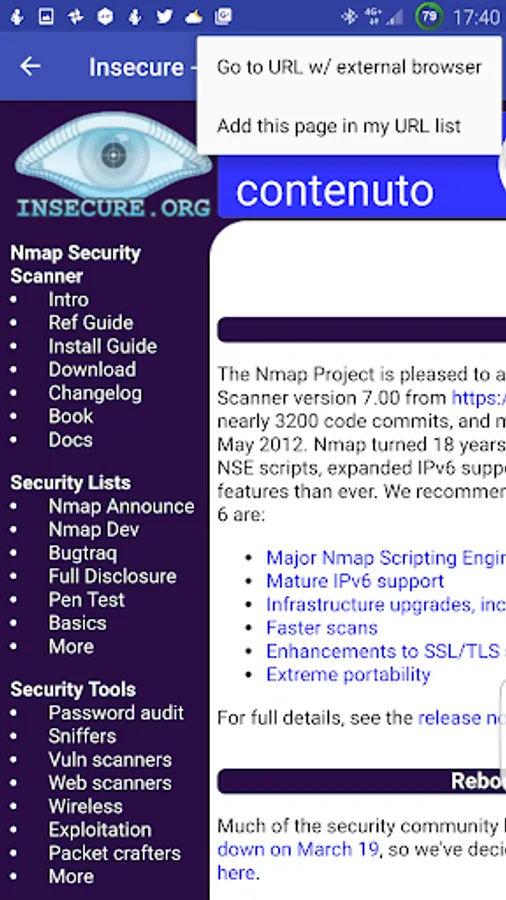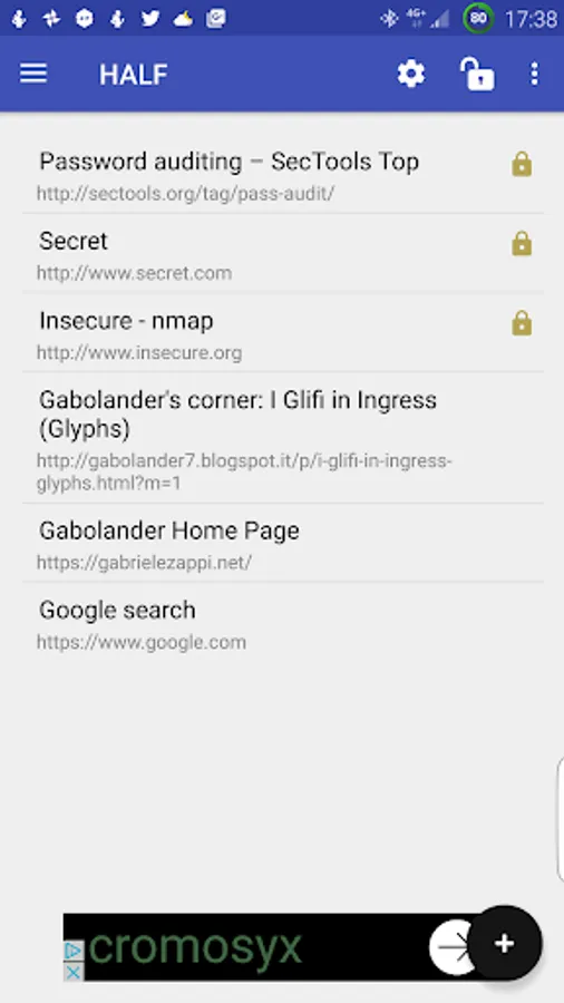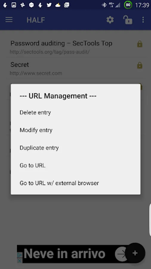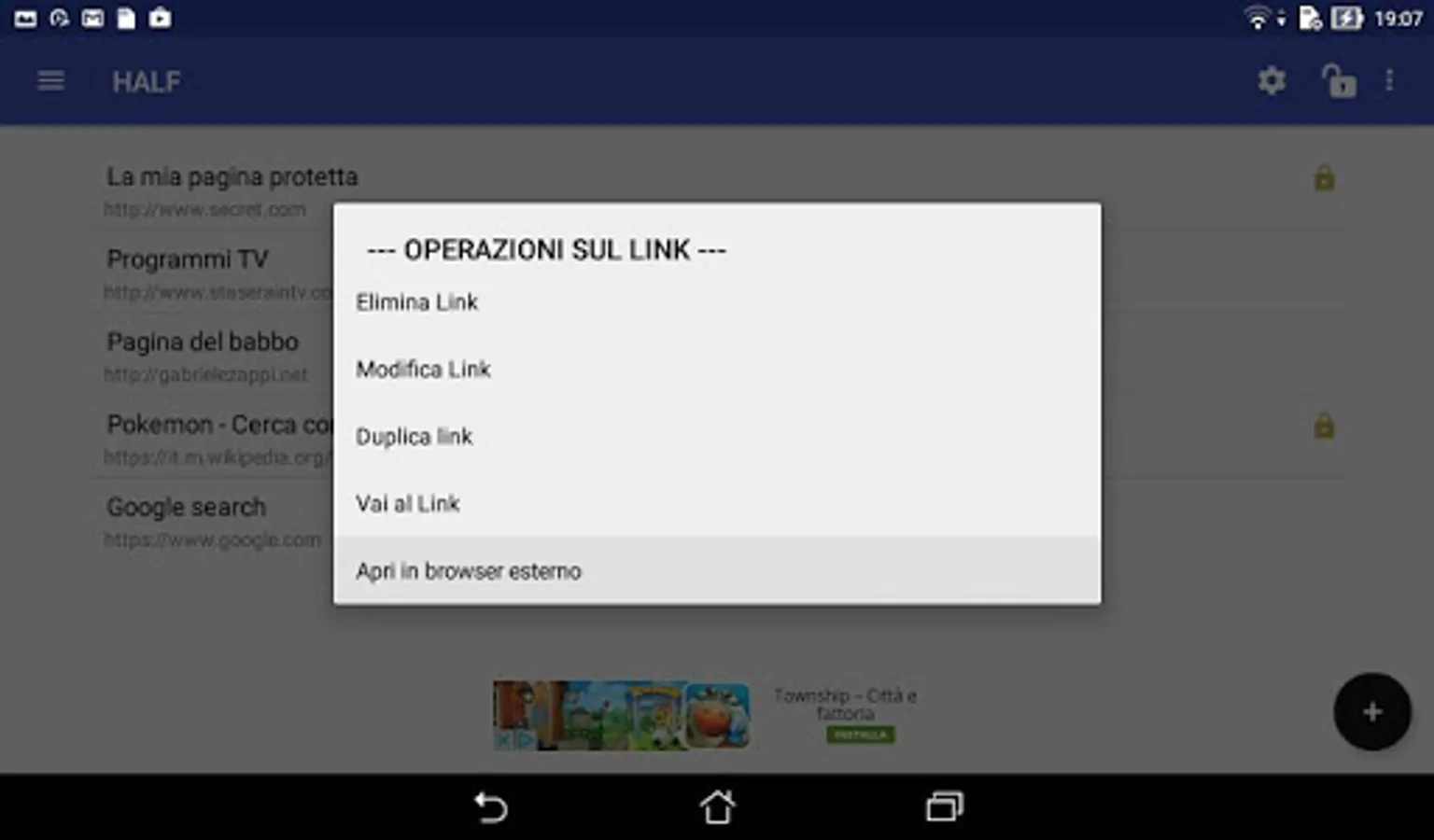 Your favorite links can be opened by default in HALF's internal browser, but in every moment you can transfer the content you're viewing to your favorite browser (or stock one), and you can add the position you are viewing the list of your links favorite, both from the built-in browser app, either from another external browser, sharing the url directly to HALF.