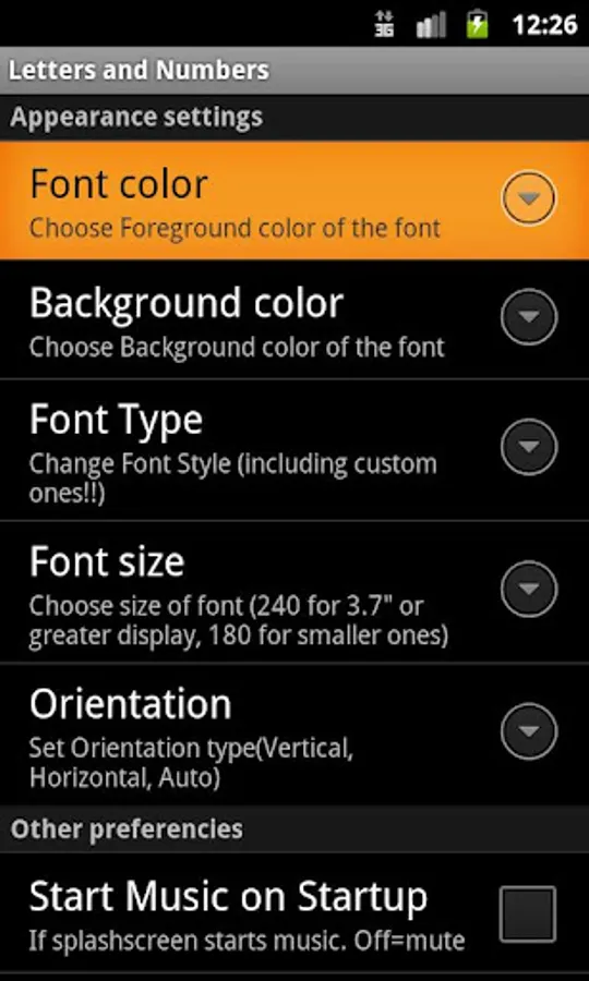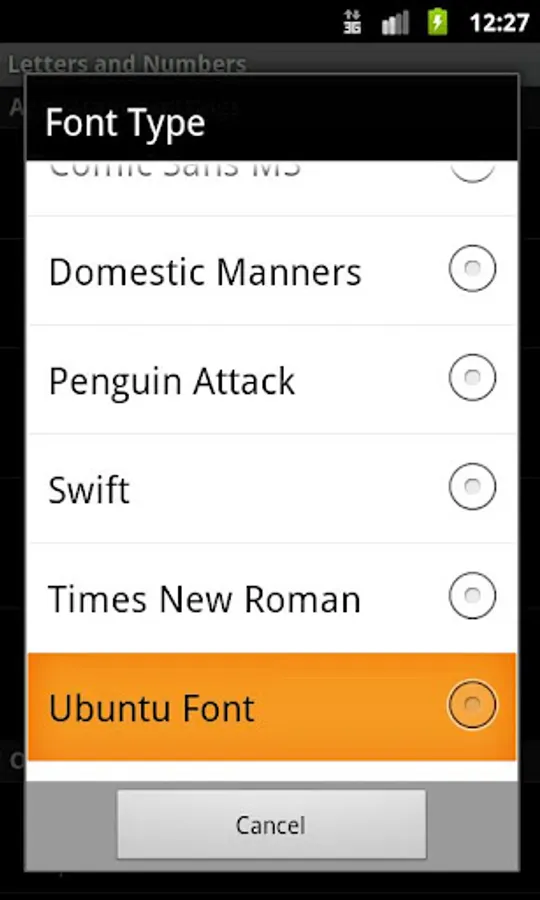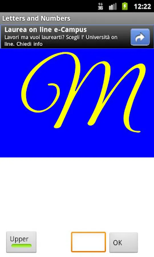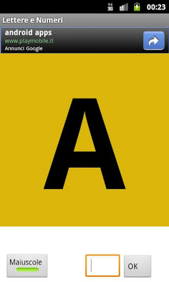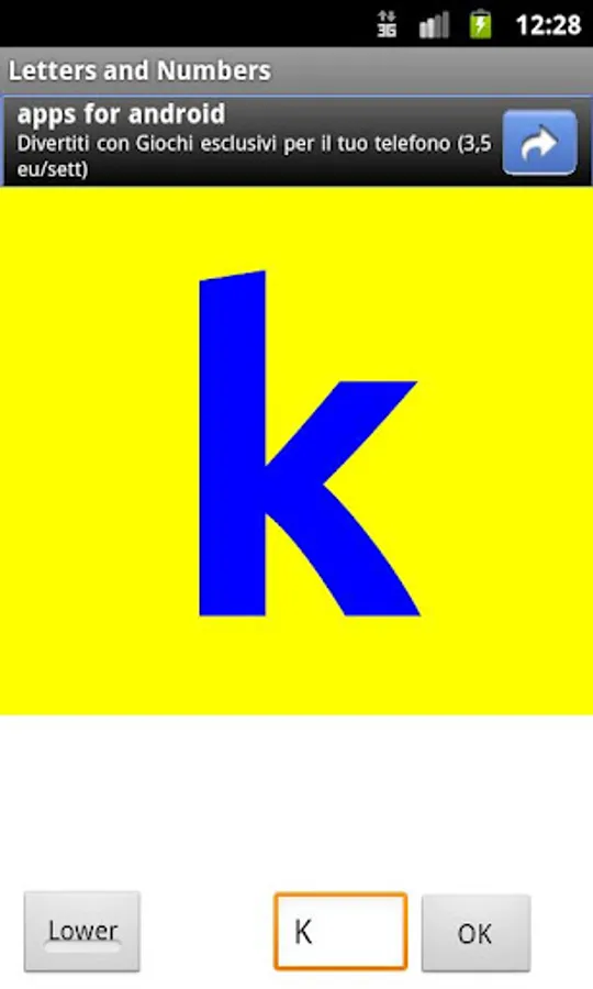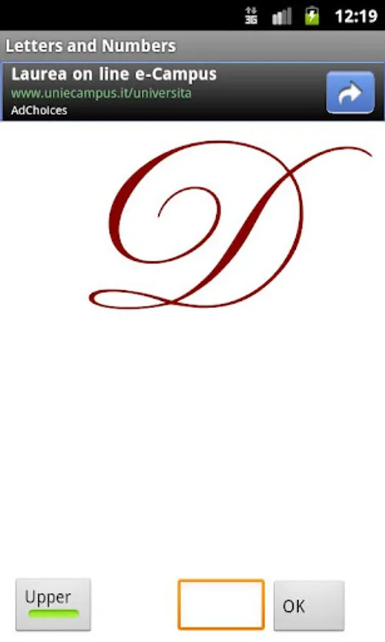 You can slide you finger left or right to scroll the sequence of letters (sorted alphabetically) and numbers, change the case of letters by tapping the Upper/Lower switch in the main UI (so as to show your child how letters change between lowercase and uppercase, varying from printing to script fonts, etc.), or jump directly to a given letter or number by inserting it in input field.