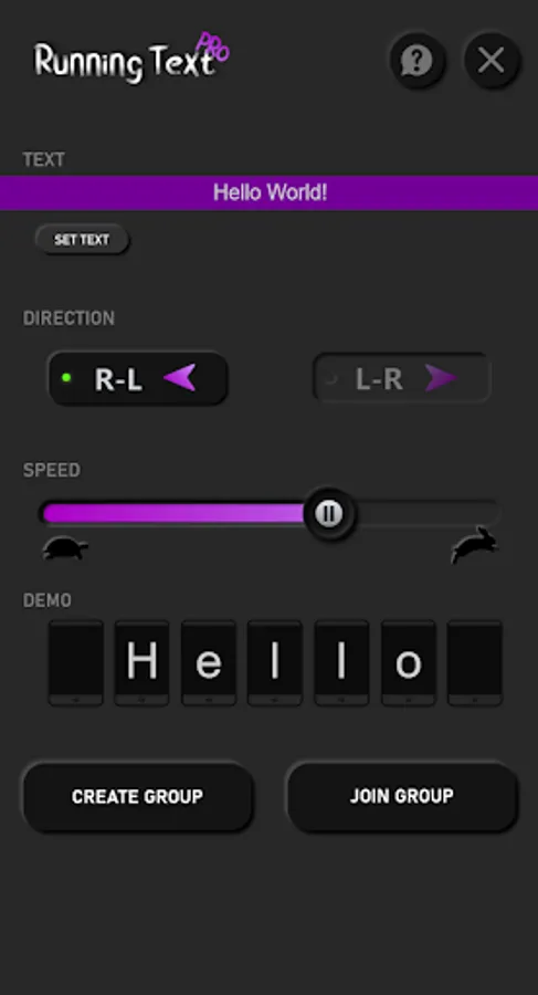 Join with your friends and create awesome running text effect on concert, disco, stadium, party, gatherings or at home.