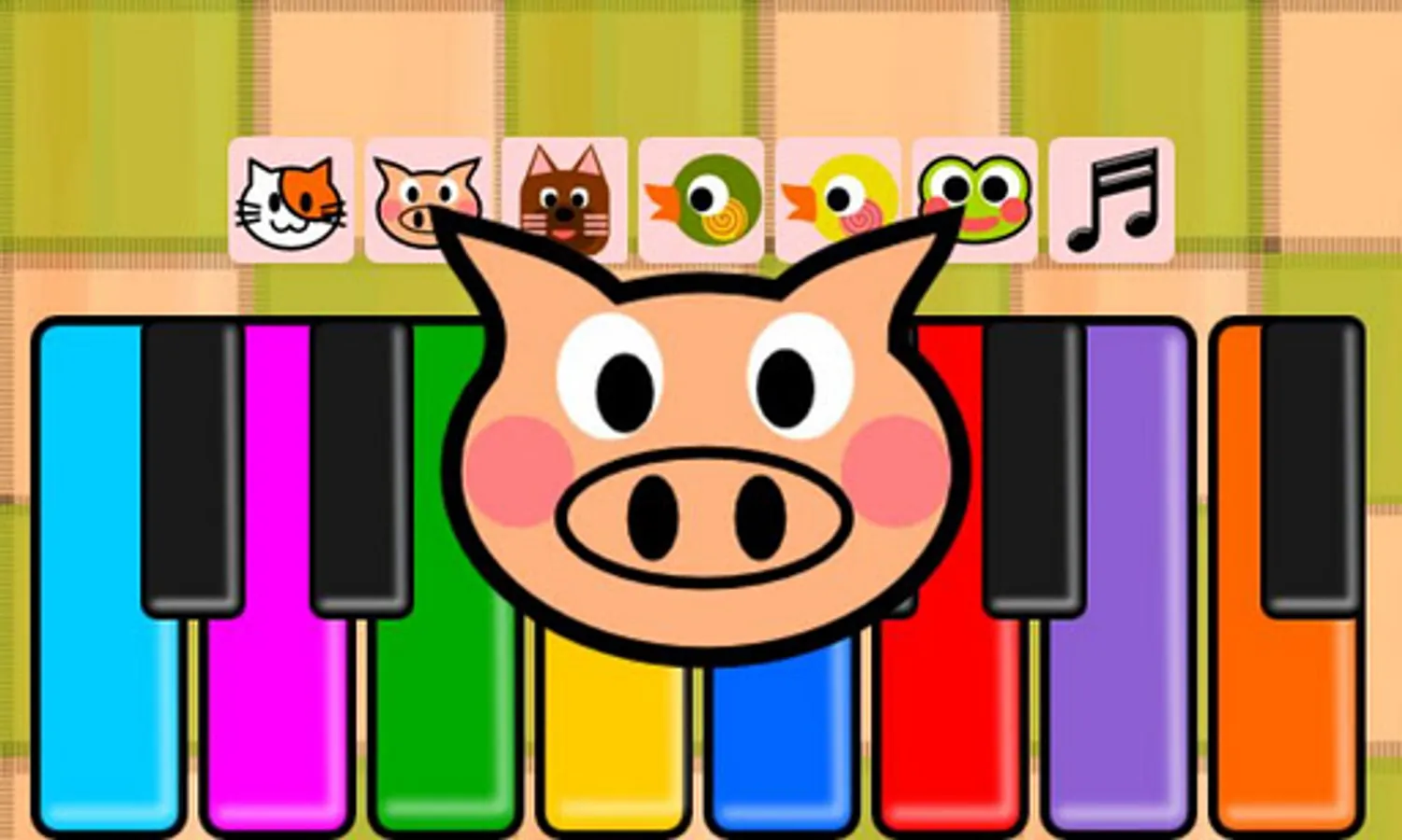 Play a piano with animal voices instead of traditional piano notes. Select from a variety of animal sounds including pig, cat, frog, and more. Enjoy the easy touchscreen controls and colorful interface.