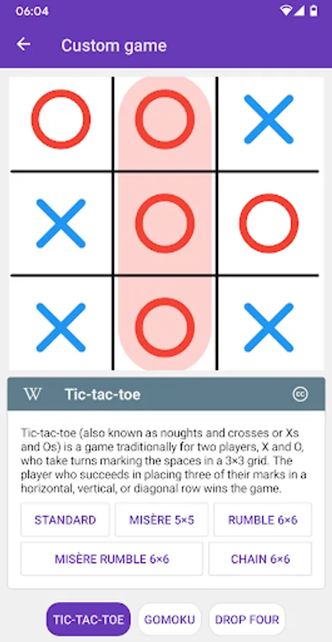 • Noughts and Crosses, Tic-tac-toe, Four-in-a-Row and Gomoku.