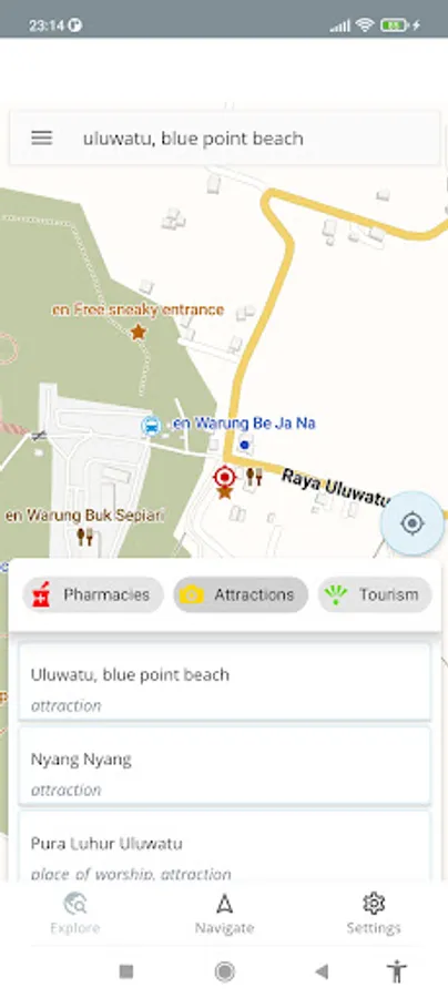 Use this app to browse the map of Bali even if you don't have an internet connection. Additionally basic navigation is available.