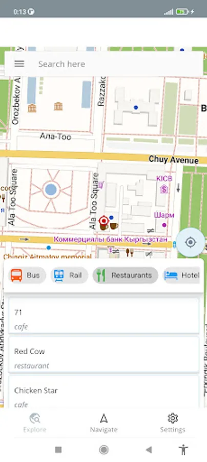 Using this app you will be able to browse the map of Bishkek even if you don't have an internet connection. Additionally basic navigation is available. Point of interest search is also available.