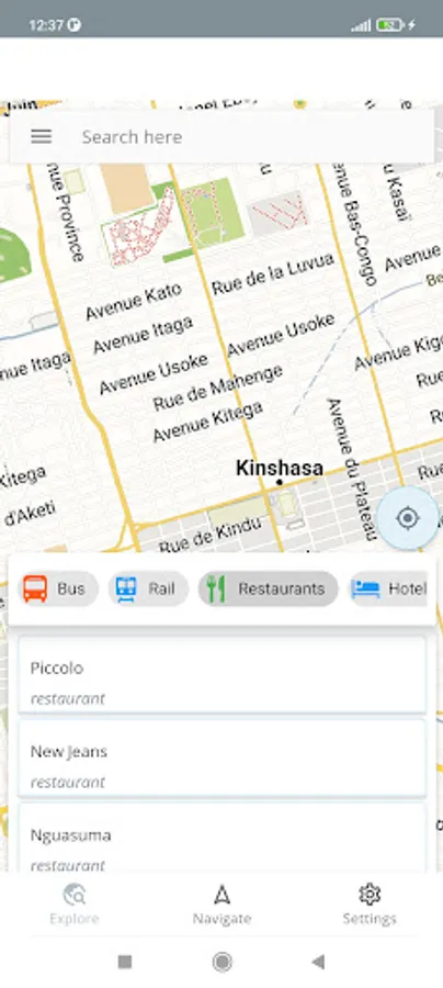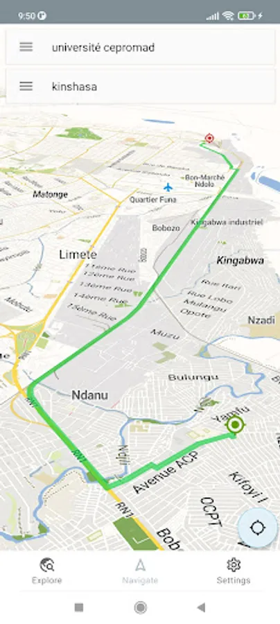 Using this app you will be able to browse the map of Kinshasa even if you don't have an internet connection. Additionally basic navigation is available. Point of interest search is also available.