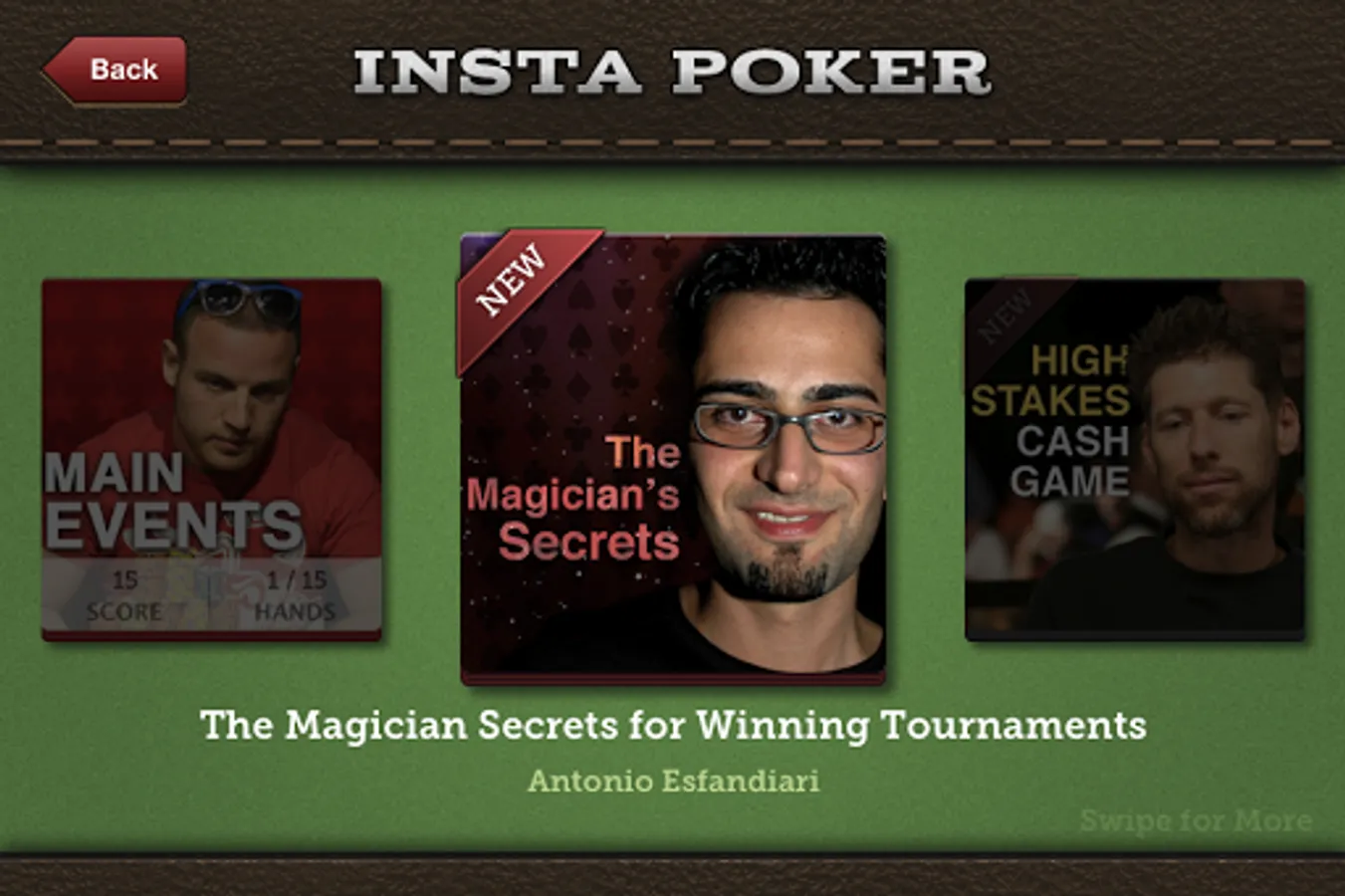 The #1 no-limit holdem poker strategy, coaching and training app. FREE to download and includes tips, training and plays coached by poker pros including poker’s all-time leading money winner, Antonio Esfandiari, WSOP Main Event winner and owner of 4 WSOP bracelets, Huckleberry Seed, top cash player, Matt Berkey and tournament strategist Jonathan Little.