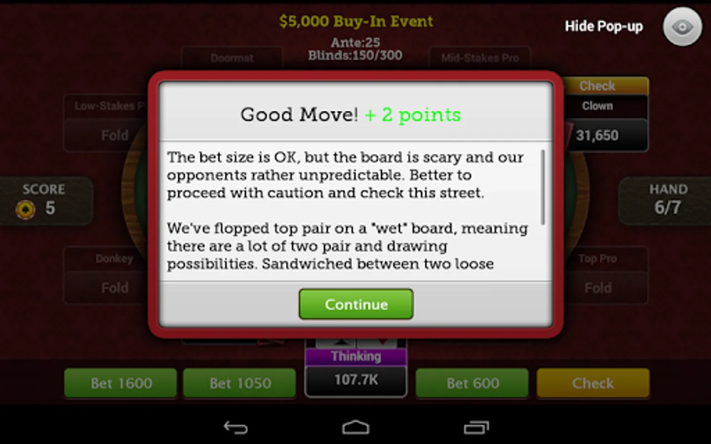 Make the “Best Move,” and you are awarded +3 ProCoins. Make a “Good Move” or “Fair Move” and you’ll earn +2 or +1 ProCoins, respectively. Make a “Bad Move,” and well, zero points for you, but you will earn the advice of the pro, who will explain why it was the wrong decision and his thought process behind making the right one.