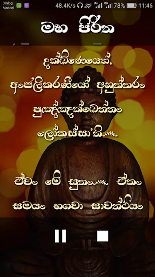 Maha Piritha (app) is an offline Pirith gatha player for the Buddhists and the others who like to listen to the powerful maha piritha (also known as Thun Suthraya or Thun Suthra Deshanawa) .