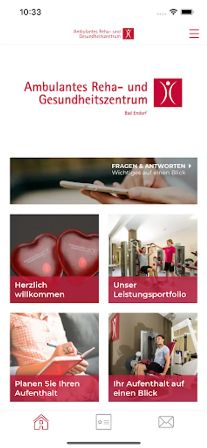 The app of the Rosenheim and Bad Endorf outpatient rehabilitation and health centers is your companion and advisor who always gives you all the important information and answers about your stay at our Rosenheim rehabilitation center and Bad Endorf rehabilitation center at the right time. Download now and design therapy!