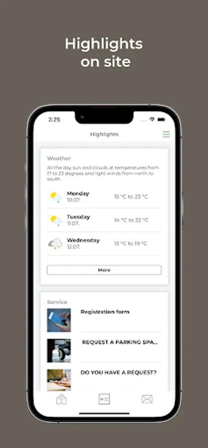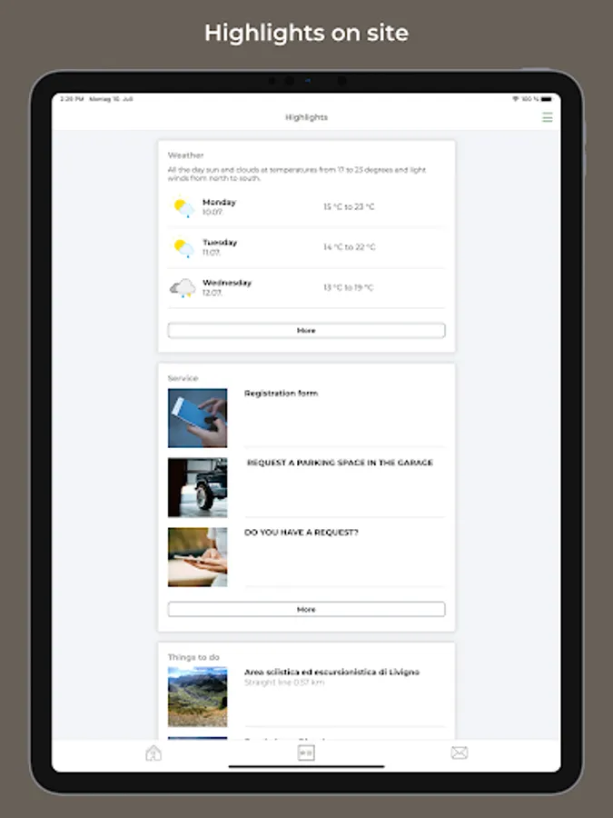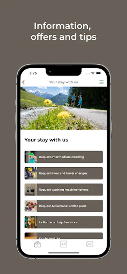 Find information about the varied services and request intermediate cleaning, change of linen or new coffee capsules via the app.