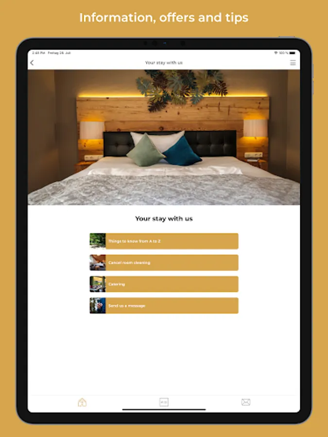 You are planning a celebration, want to give away a voucher or cancel room cleaning? Simply send us your message via the app, book online or contact us via the chat feature.