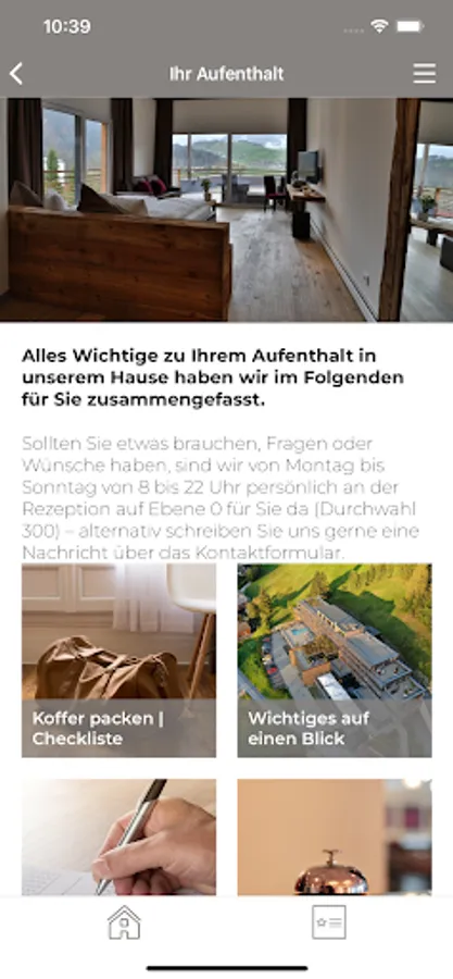 Receive the latest news as a push message directly on your smartphone or tablet and always stay up to date about your stay at the resort.