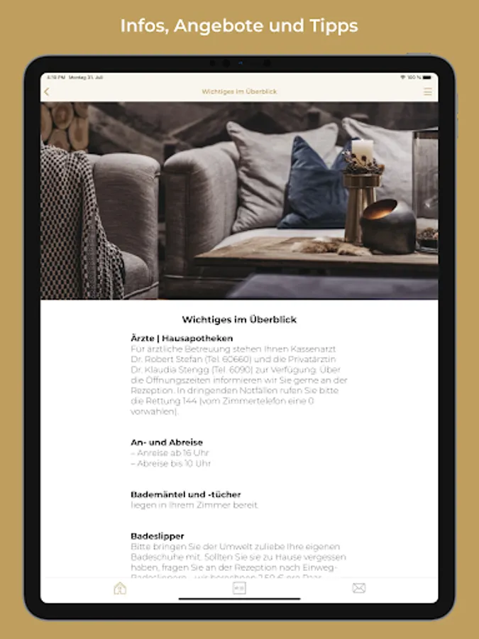You will receive the latest news as a push message on your smartphone or tablet - so you are always well informed about our wellness hotel in Tyrol.