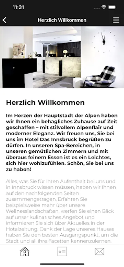 You'll receive the latest news via a push notification on your smartphone or tablet and via our Morgenpost – that way you’ll always be up-to-date with what’s going on at Hotel Das Innsbruck in Austria.