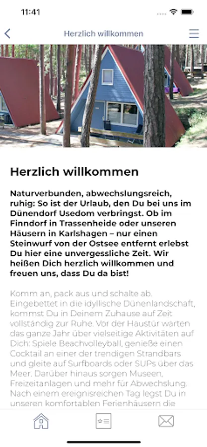 The app is your ideal travel companion - here you will find the most important information about your holiday in Finndorf in Trassenheide and in the holiday homes in Karlshagen. Download now!
