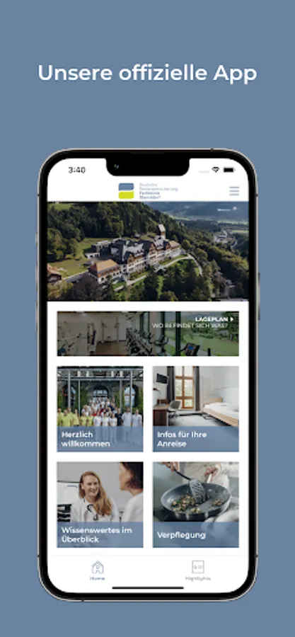 In our app you will find the most important information about your stay in the rehabilitation clinic for orthopedics and rheumatology in Oberstdorf, Bavaria. Download now!