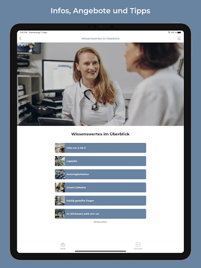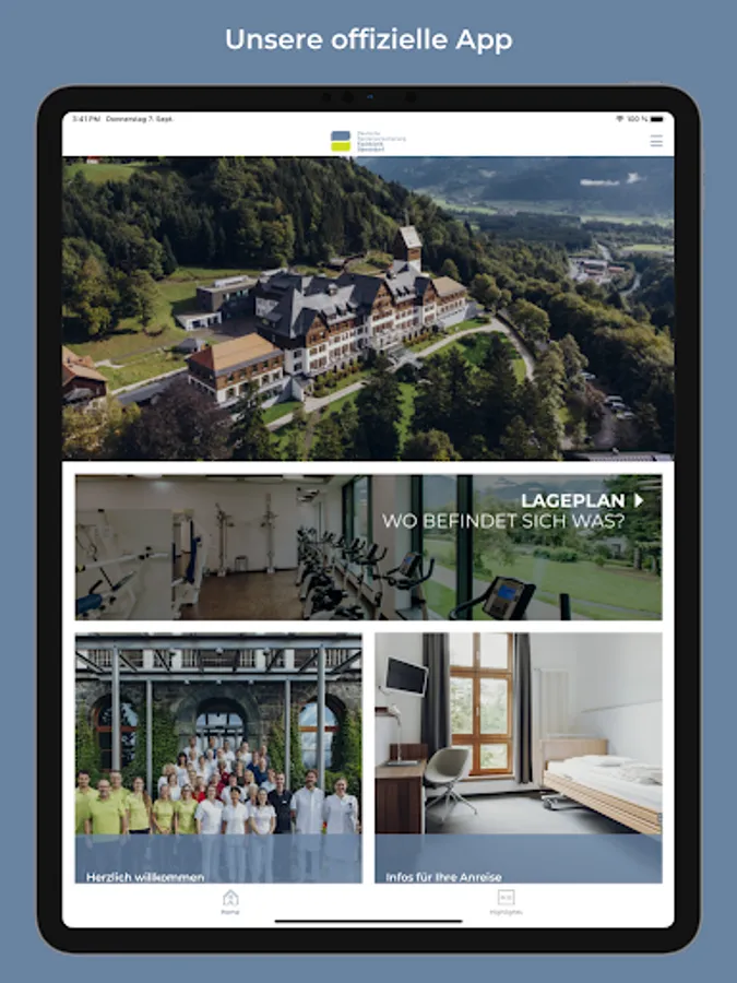 Whether sauna, swimming pool, library, training room or leisure building: In our app you can find out everything about our wide range of sports and leisure activities at the rehabilitation clinic in the Allgäu. Take part in our courses and excursions and discover our digital event calendar.