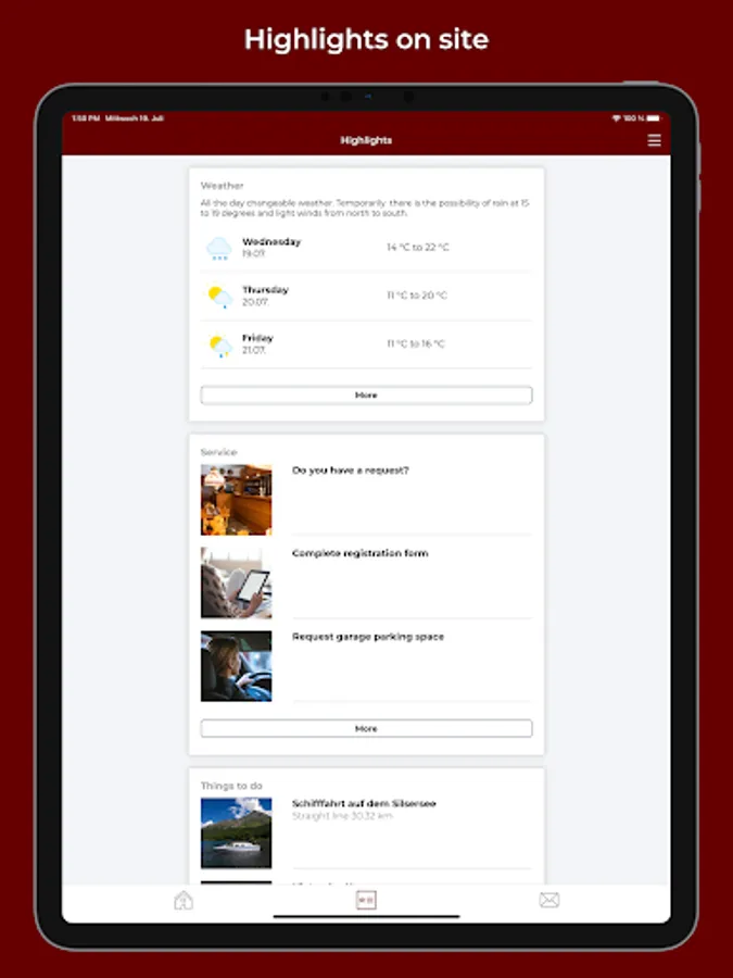 You want to cancel the daily room cleaning or request a garage parking space? You have a question or request? Simply send us your message via the app, book online or contact us via the chat feature.