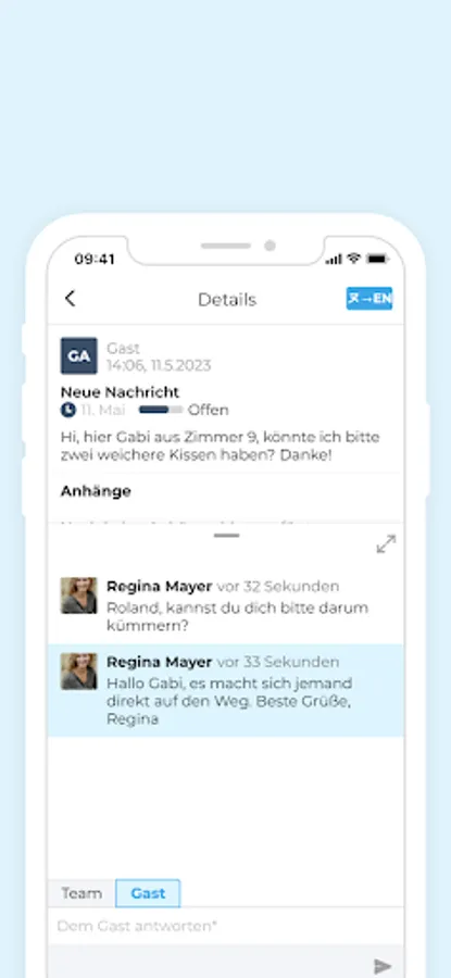 Organise requests and chat messages from your guests in a trice: You can send replies in real time and make sure the tasks are being taken care of by assigning them to your team members.