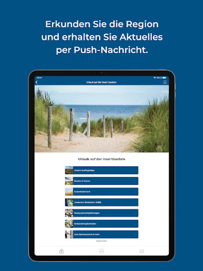 You will receive the latest news as a push message on your smartphone or tablet - so you are always well informed about the hotels, guesthouses and holiday apartments on the Baltic Sea.