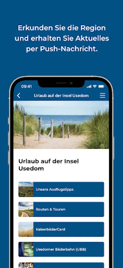 In addition, with our app you always have useful addresses and telephone numbers, information about the Usedom Bäderbahn and the guest card with you on your smartphone.